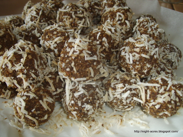 - When the texture is good for rolling, roll about a tsp of mixture in desiccated coconut (I used shredded and it just doesn't stick properly).
