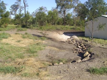 | The drain around our shed when arrived (Bruce on the edge of the shot) |
