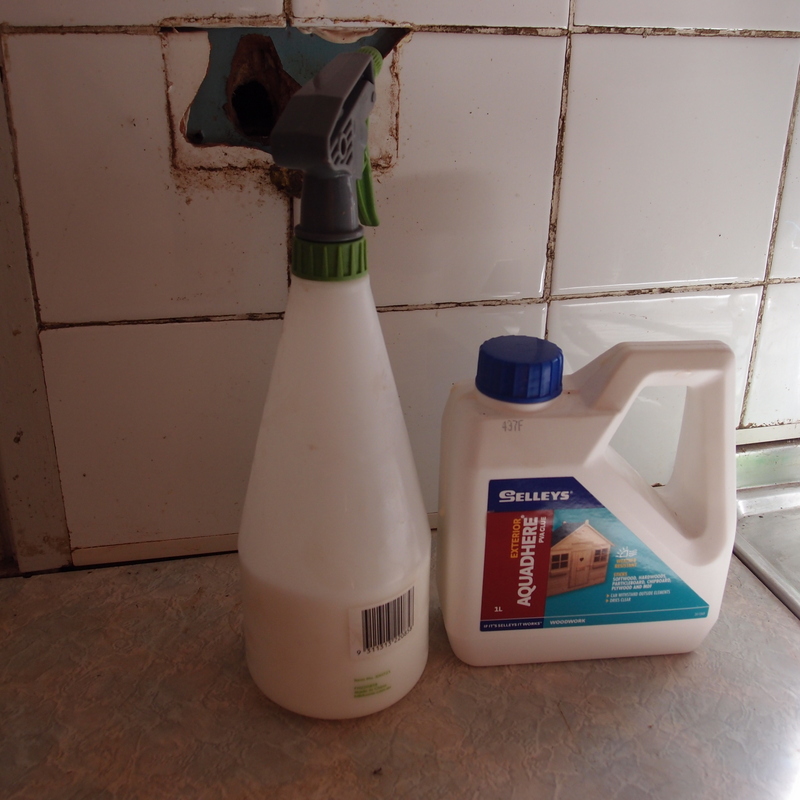 | PVA glue mixed with water is used to settle and stick any remaining asbestos fibres |