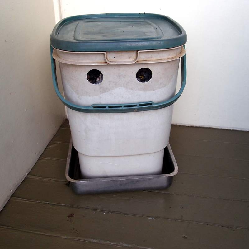 I was really missing my twoworm farms when I’m at my weekday unit in Brisbane. I hate throwing out perfectly good food scraps, so I was hoarding them in the fridge. This was not a long term solution! Pete helped me to modify a bokashi bin that we weren’t using and it’s now a mini worm farm for my city unit. I could have just used bokashi, but I don’t like having to buy the bokashi powder and it doesn't seem to break down as quickly. The bin just needed some air holes and its perfect for worms. I’m using a dish underneath as a moat to keep out the ants and to keep the decking clean.