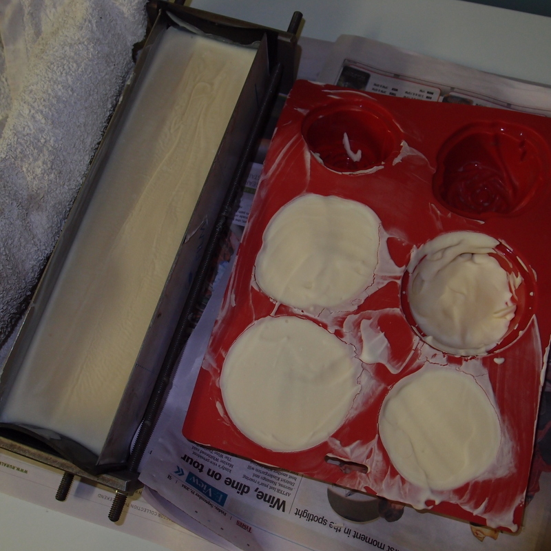 Still talking about the butcher (it was a BIG day!), this time we remembered to ask for the kidney fat, and I chopped it up and rendered it in the slow cooker right away, as well as putting some other chunks of fat in the freezer for later. We still have some left from the last animal, so I was very pleased to see that fat from one animal will make enough tallow soap to last us the entire year. I am looking forward to experimenting and making some nicer soaps to use for gifts. Pete and I made one already, and I am feeling more confident after my last soap disaster!