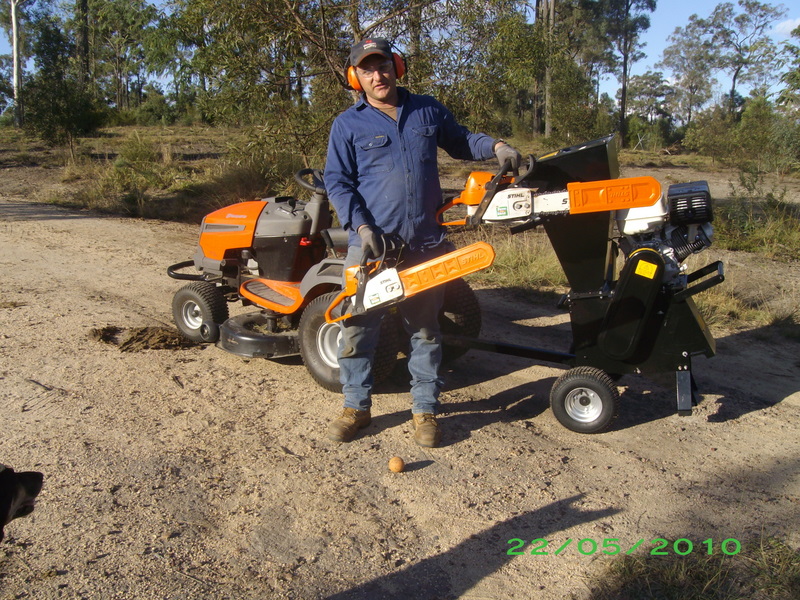 After you've checked everything and suited up, you're ready to start the engine. Most engines start best with the choke on (unless they have just been running, say after refueling) as this restricts air access to the engine and with a fuel-rich mixture it can get started more easily. If its not an electric start, you have to pull the cord to get the motor turning over until it can sustain itself. Some two-strokes will also need you to pump in a little fuel to get it started, not too much though! Best to press the fuel bulb only once or twice and put some more in later if that's not enough, otherwise you will flood it and have to wait for the fuel to drain back out. Generally you also hold the throttle on a little bit for a two-stroke as you start it as well (our whipper snipper and chainsaws have a clip to hold down the throttle the right amount, otherwise you'll have to do this manually). Now you pull the cord a few times until the motor turns over, then open the choke and pull the cord again until the motor starts. You may need to repeat this a number of times if its a fiddly one, our large whipper snipper usually needs to be thrown to the ground and sworn at before it will start. Chez also finds it helps to bark encouragement at this stage.