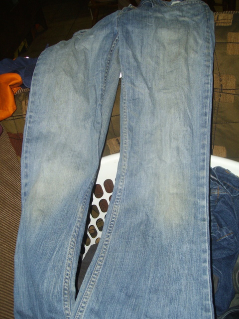 I took some before and after photos of some of our really dirty jeans, because I thought they would be the hardest to get clean. In general I've been pretty happy with results. As you can see these jeans got as clean as I would have expected from the bought laundry powder we usually use. They don't always come out perfect, but they are only going to get dirty again, so we don't worry so much about work clothes anyway! Pete has requested that his work jeans are washed in hot water with laundry powder so that he looks presentable before he gets dirty again. But apart from that, I think soap nuts are great for all other laundry.