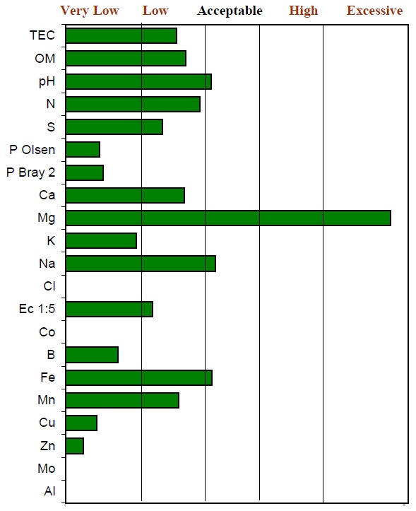 APAL provides the results in a table and graphical format, with a very good information sheet to explain what everything means. If you pay extra they will work out quantities of minerals to spread on your land per hectare, but we didn't want to do that, so I only paid for the basic analysis.