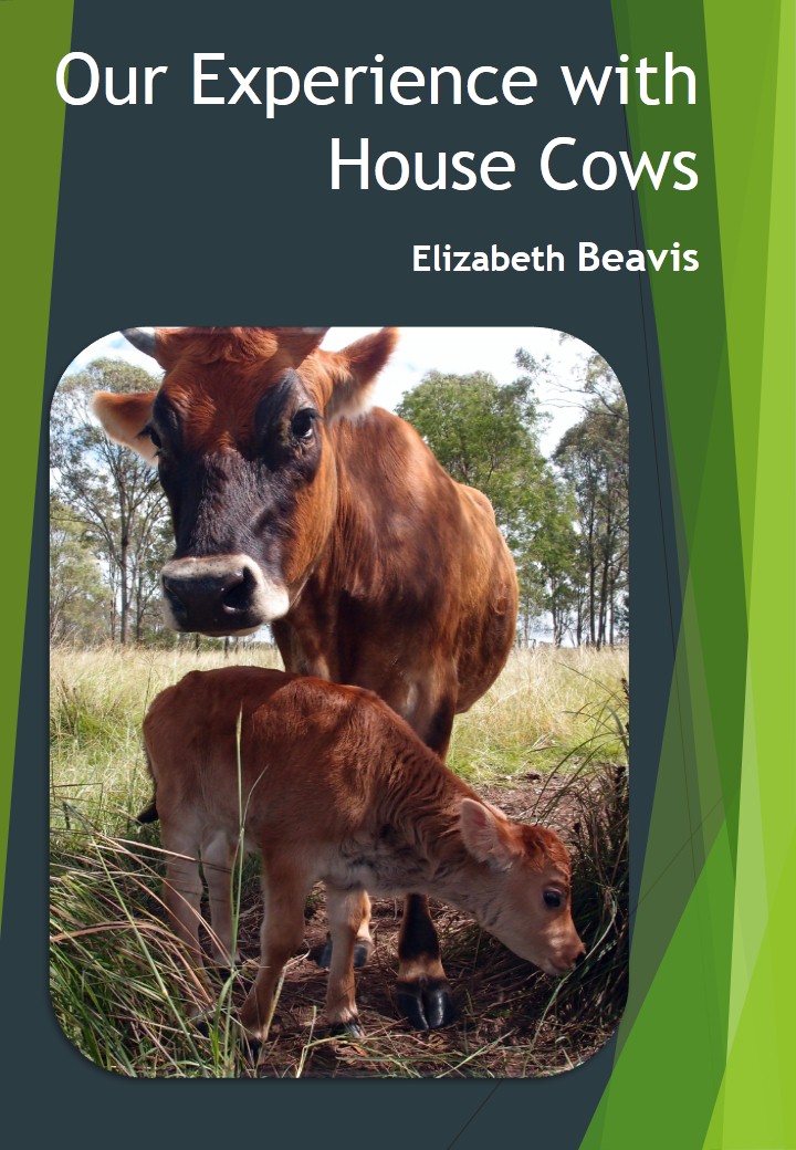 Buy my ebook "Our Experience with House Cows" on Etsy, Lulu and Amazon, or email on eight.acres.liz at gmail.com to arrange delivery. More information on my house cow ebook blog.
