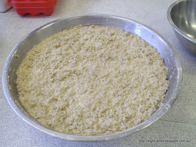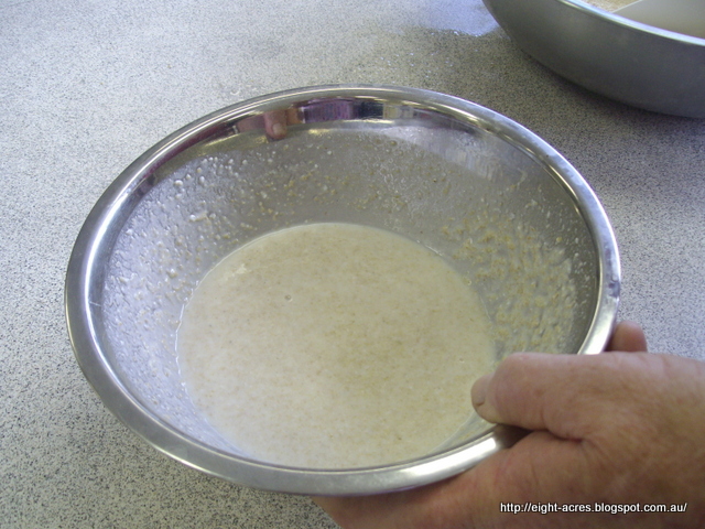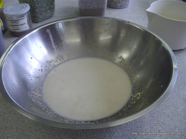 The sourdough "sponge" had been made the night before, by adding flour etc to the starter, so for us to make bread we just had to add more flour to the sponge until it had the consistency of dough.