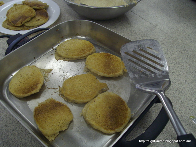 | cooking the pikelets in ghee |
