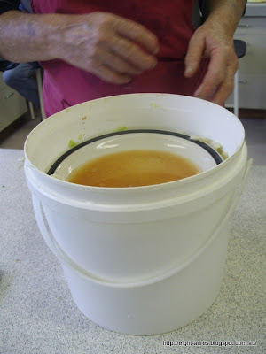Elisabeth recommended using very ripe fruit for maximum sugar content. Crush the fruit in the bottom of a fermenter and top up with sugar and water. Sugar content will determine alcohol content, so this needs to be worked out quite carefully. Elisabeth added wine yeast, but some people at the workshop had made it without wine yeast (just using the natural yeast on the skin of the fruit), so this may not be necessary, however the wine will keep better with a nice high alcohol content, which can be achieved more consistently if yeast is added. She also discussed various additives which seemed to defeat the purpose of making it yourself, so I'd probably do a little more research before I have a go. I do still enjoy making fermented drinks using whey (eg citrus and ginger drinks), but for very sugary fruit this isn't possible. I would also be interested in trying to make vinegar from the wine as I can't find a good source of balsamic vinegar and I go through an awful lot of apple cider vinegar too!
