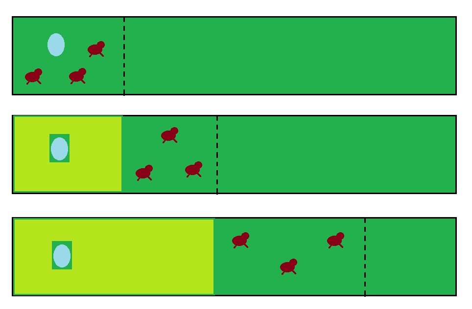 The greatest benefit is realised the more frequently the animals are moved and the smaller the paddock size, but even splitting a property into a few large paddocks will make a difference to the ability of the pasture to regenerate. This method can also be used to graze forage in sections rather than letting the cattle have all the forage all at once. This ensures more even grazing and less wastage.