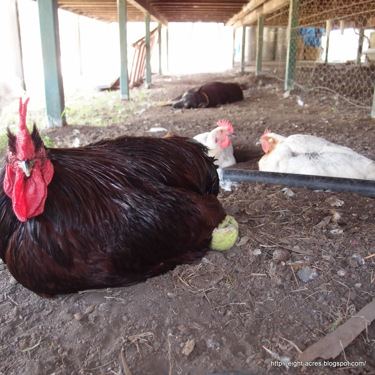 At Eight Acres, the favourite place to be was in the dirt under the veranda, the chickens have made their own holes under there and the dogs would lie there with them too. We have put boards around the house at Cheslyn Rise, but Taz can still sneak under there to find a cool spot. Another tactic that we use is to feed cool fruit or vegetables to chickens later in the afternoon, juicy options such as tomatoes or watermelon being particularly effective.