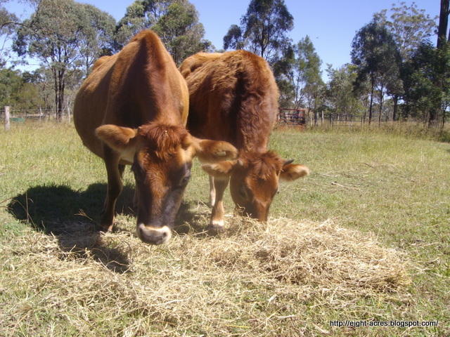 Bella is a pure-bred Jersey cow, all Jerseys are relatively small compared to other breeds, and Bella is particularly small even for a Jersey cow. This means that she is very easy to manage. If she is being naughty, we can just push her around, unlike a big cow. It also means that her milk production is lower than a big cow. We don't need heaps of milk, so it suits us just fine. She produces about 12 L per day at her peak production, but towards the end of her lactation we were taking about 4 L once a week, which was plenty for our daily milk consumption. If we wanted to keep making cheese, we could have milked her daily instead.