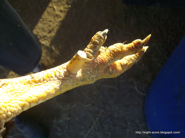 Poor Wilbur doesn't particularly appreciate being picked up, but we noticed that he had injured a couple of the hens with his spurs, so we decided it was time for a pedicure. This is required every year or so, depending on how fast the rooster's spurs grow, this was the first time we had done Wilbur, but we've done plenty of other roosters.