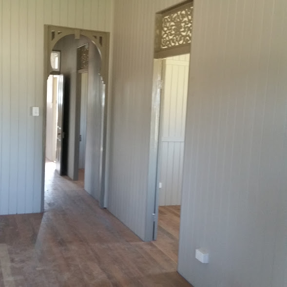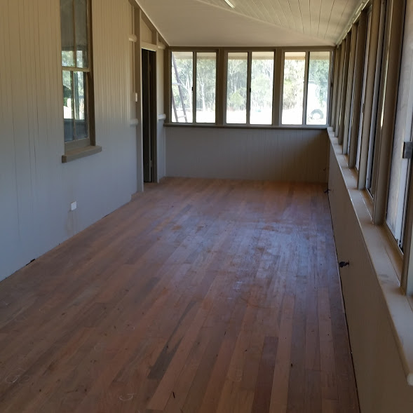 The new floors are 10mm thick ironbark "tongue and groove" boards laid over the existing hoop pine. We looked at having the hoop pine sanded, however it was never designed to be walked on, being a soft timber, they have always been covered with rugs, carpet or lino. The boards had big gaps in them (you could see the ground through some of the gaps!) which would have been a lot of work to fill. We thought about tiles, but they are better suited to concrete slabs, not wooden houses on stumps that shift (we have tiles in the bathroom and laundry only, just small rooms). We are not fans of carpet (I HATE vacuuming) or lino (plastic!), but when we found out that we could get hardwood floorboards (not "engineered", but natural wood boards), we thought that was a really good option for this house.