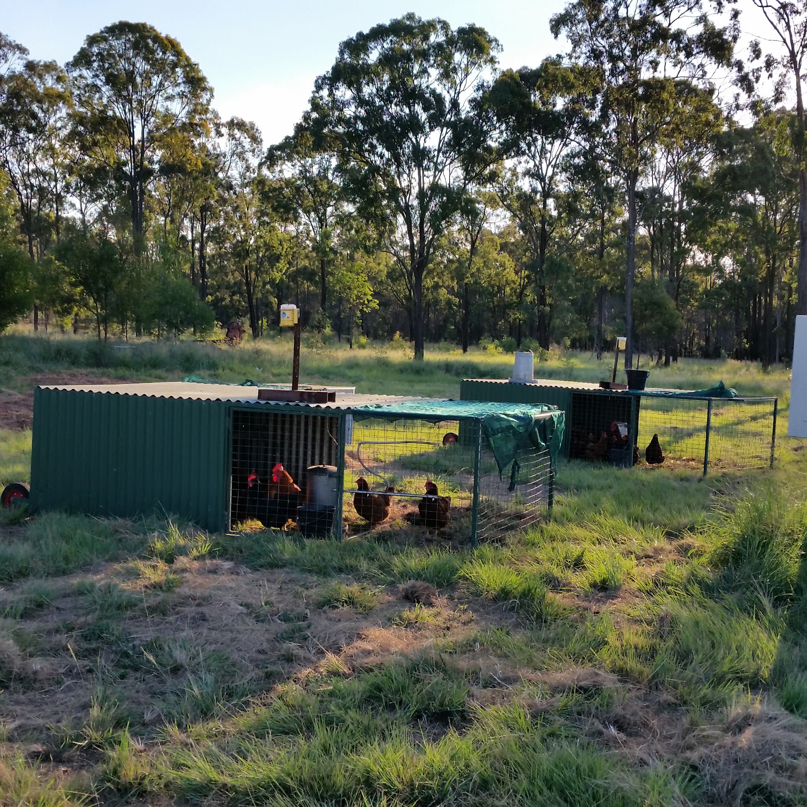 | Chicken tractors in their new location |
