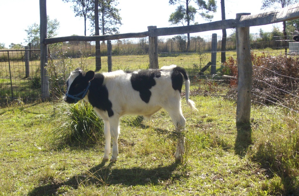 We turned up early one foggy Saturday morning to pick him up. After driving 30 min with the cattle crate on the back of the ute, and with no real alternative, there was little chance that we weren’t going to buy the little fella. When we saw him though, it was clear that he wasn’t a Hereford, or a steer! So we brought home our little Fresian bull and wondered what to do.